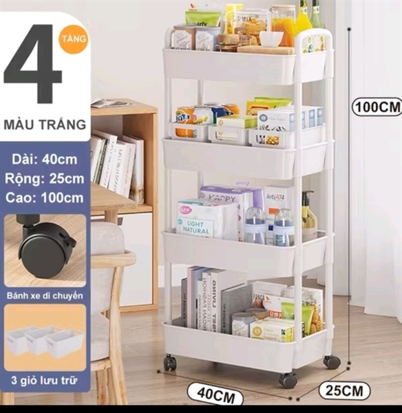 Kệ nhựa 4 tầng có bánh xe họa tiết