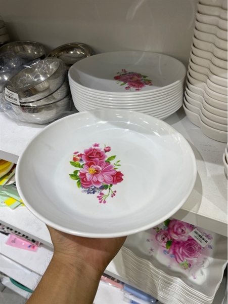 Dĩa Nhựa Lớn Hoạ Tiết Hoa Dâm Bụt Đỏ-W5