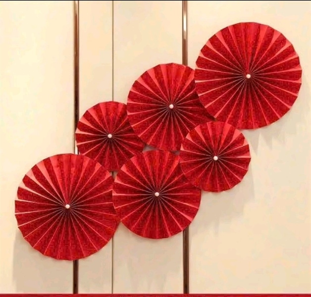Set 6 quạt giấy đỏ dán tường - S112
